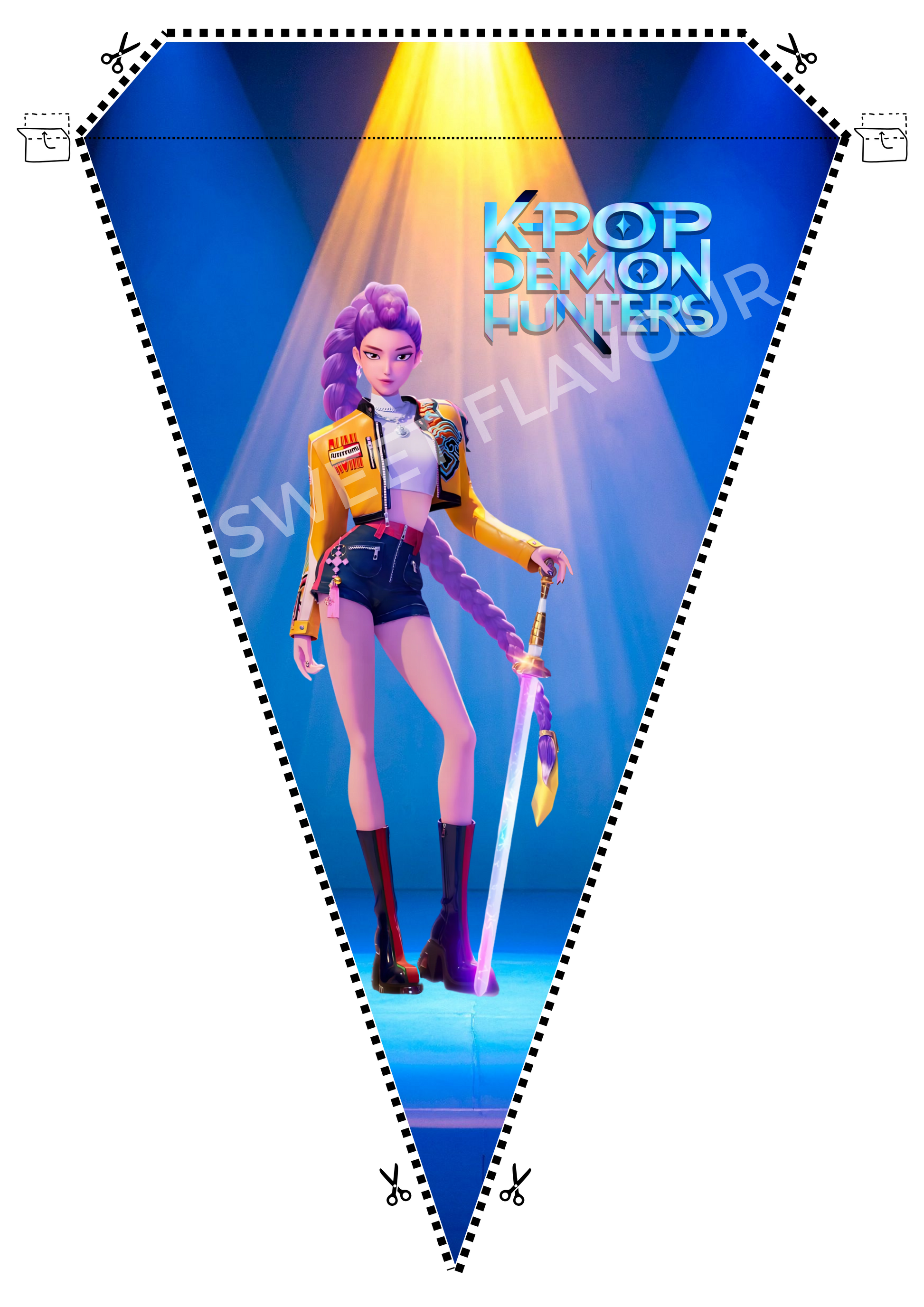 Fanion Banderolle à imprimer Demon Hunter Rumi. Taille A4. format PDF. Taille : Largeur 19cm - Hauteur 27cm