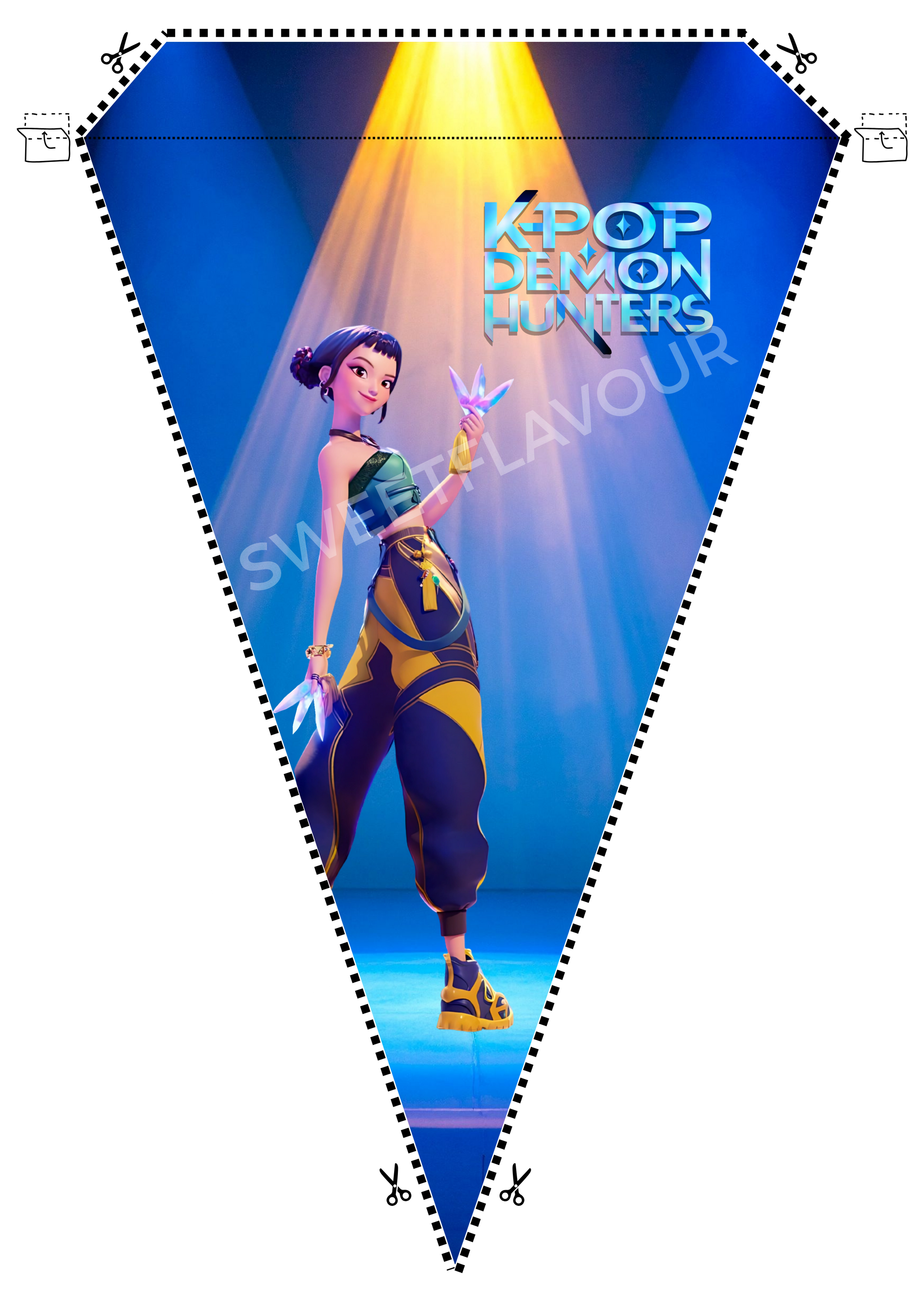 Fanion Banderolle à imprimer Demon Hunter Zoey. Taille A4. format PDF. Taille : Largeur 19cm - Hauteur 27cm